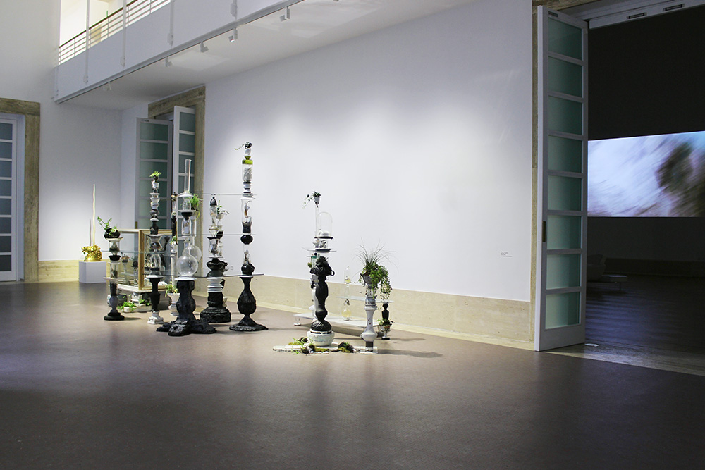 ….ed ecco soprattutto i Wonder objects di Chiara Bettazzi (2013-2018): due artisti quarantenni, da me almeno inauditi, che rendono visibile l’ipotesi di un ricominciamento possibile, o almeno ipotizzabile, dopo la fine dell’Antropocene. Quando «ostinata e sorprendente torna a proliferare la vita». Davanti all’installazione crudele e ambiguamente elegante di Bettazzi, vengono in mente la Glass Menagerie di Tennessee Williams, le glass bells di Joseph Cornell (una genealogia ripercorsa da Roberta Aureli, La campana di vetro, Bulzoni 2016), magari anche le bottiglie di Morandi. È, scrive Bussoni, una «natura morta e insieme graziata dalla vita»: dove non si sa, però, se sia da temere più la morte sotto vetro o la vita – la malattia della materia, diceva Thomas Mann – che malgrado tutto la insidia. A dominare è l’opacizzazione di una polvere che è insieme segno di morte, certo, ma anche di una vita (il pulviscolo, il polline nel clinamen lucreziano), appunto, non così rassicurante.