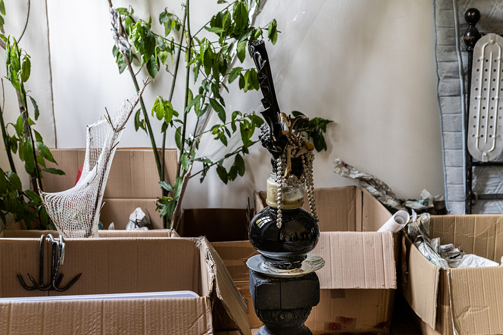 La foto, l’installazione, il video configurano, mediante isomorfismi estroflessi ed introflessi, non tanto un ma il processo unico, organicamente unicellulare di un evento singolarmente impersonale che fa mentre si fa, che si modifica fino a pervenire ad un certo stato per poi recuperarsi a cominciare da lì, ritornando, sempre di nuovo, a tutti gli effetti, a sé a partire da quell’esteriorità intestina innominabile, riarticolandosi in una pareidolia che rivela che non c’è niente da rivelare."